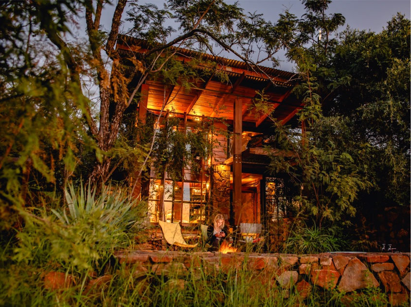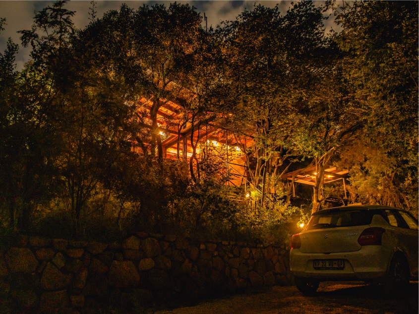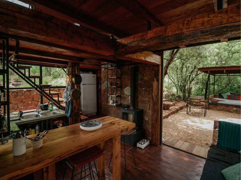 Larger than the Kama Cabin, this one was designed to have an upstairs bathroom and bigger kitchen, while keeping the cozy, warm cabin feel. The wood burning fireplace will keep you warm in winter and the forest will keep you cool in summer. The cabin is also located just a 5 minutes walk/hike from the rock pool and high up on the hillside with a perfect view of the Magalies valley for awesome sunsets. We even built a yoga deck out in the front facing the view for meditations and salutations.