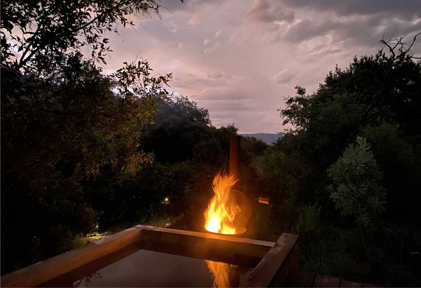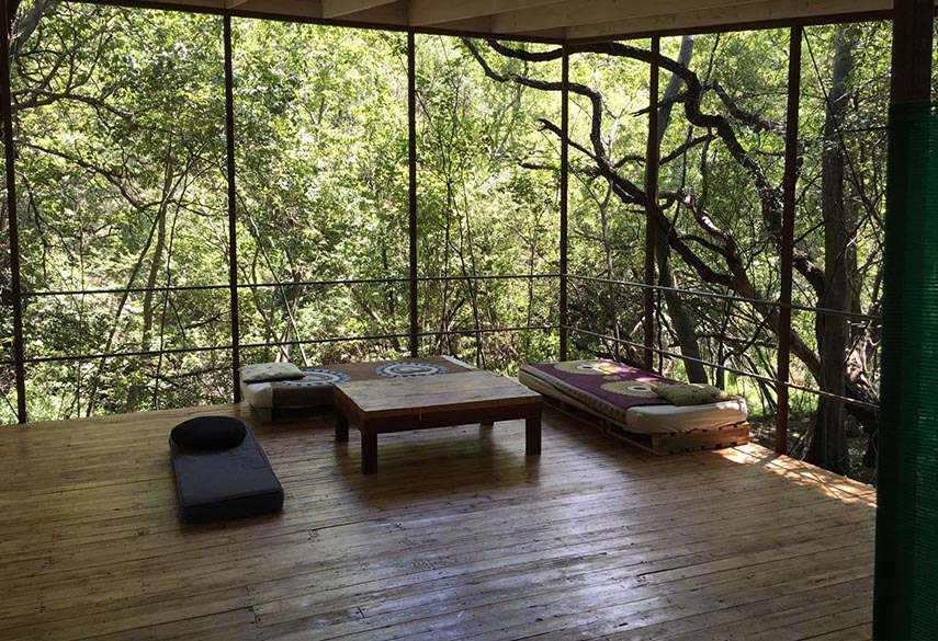 There are 16 beds - with bedding and bath towels provided based on number of people. There are 8 bedrooms (4 cabins & 4 treehouses) that can comfortably sleep 2 people per room. A wooden deck that is an ideal space for hosting meditation, yoga, dance or drama workshops. For the cabins there are 2 freestanding bathrooms with open-air showers. The treehouses each have a toilet and basin on their front decks, with 2 showers located in the forest next to them. There is now an enclosed lounge next to the kitchen and dining area - a cozy spot with couches and a fireplace for bad weather.