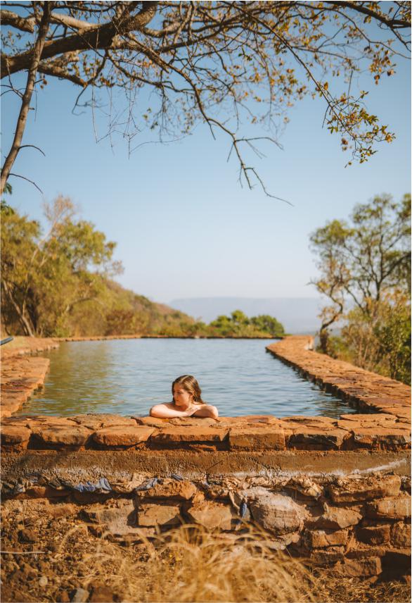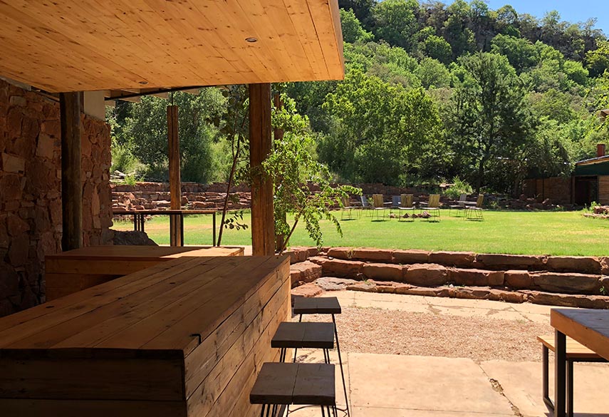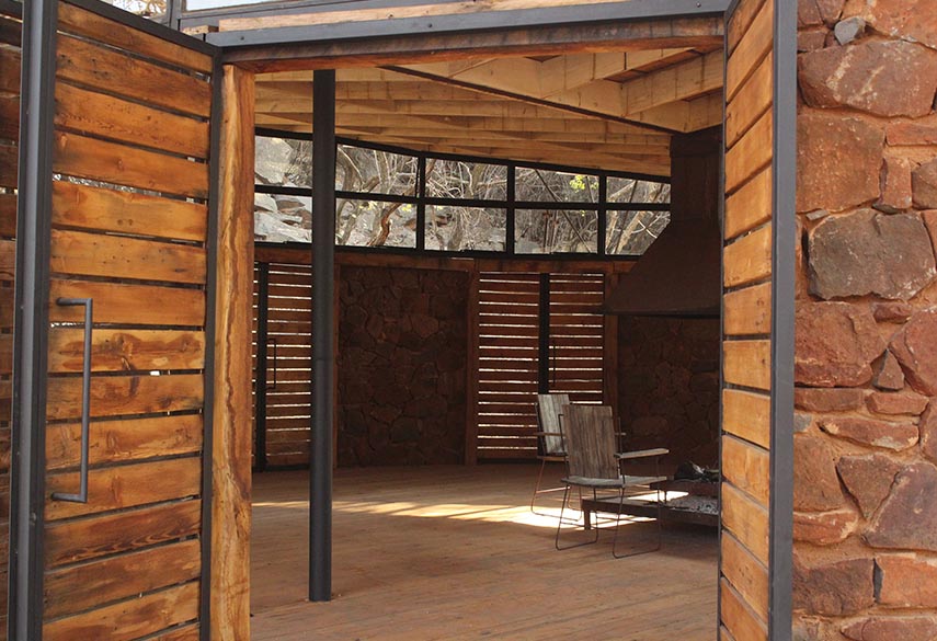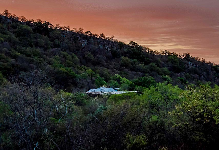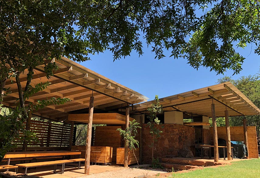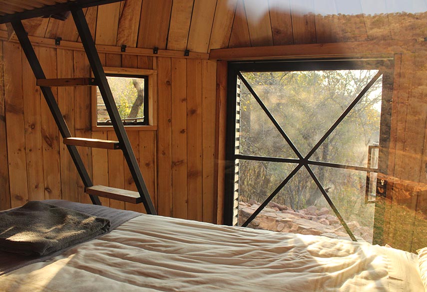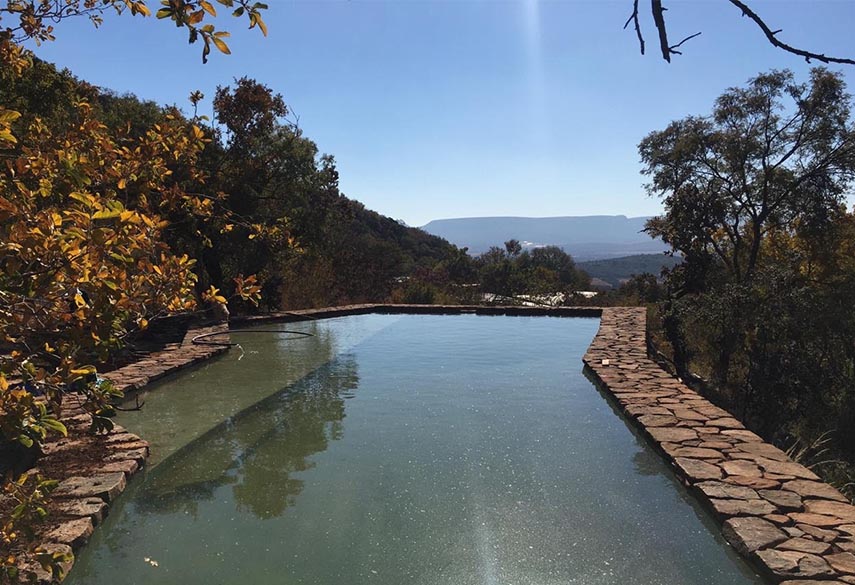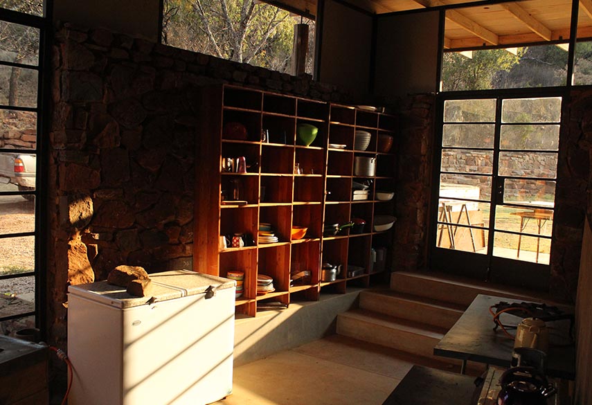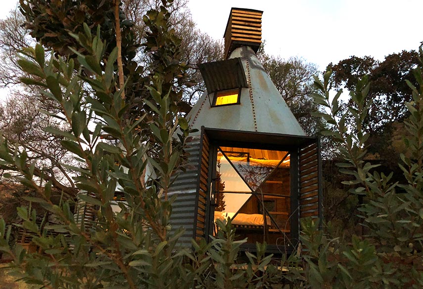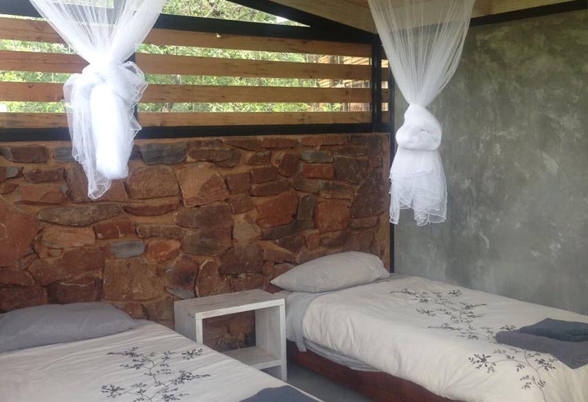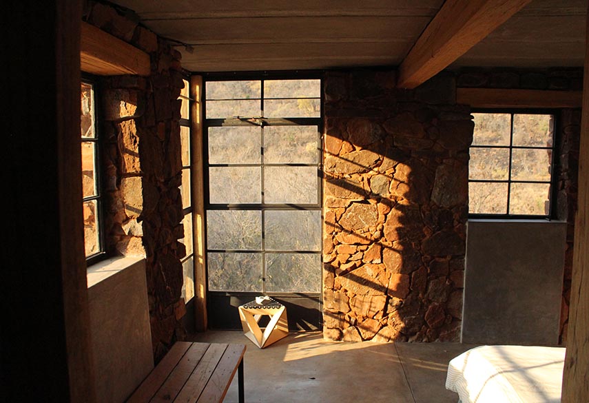 A mixture between an Incan village and a modern, bush-veld glamping experience. A series of lawned terraces built on a shelf beneath majestic cliffs, overlooking the rest of the valley and the Magalies mountains.