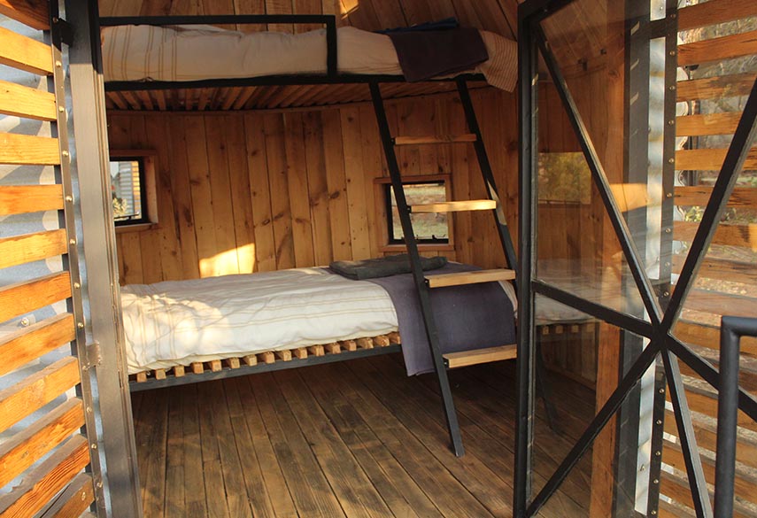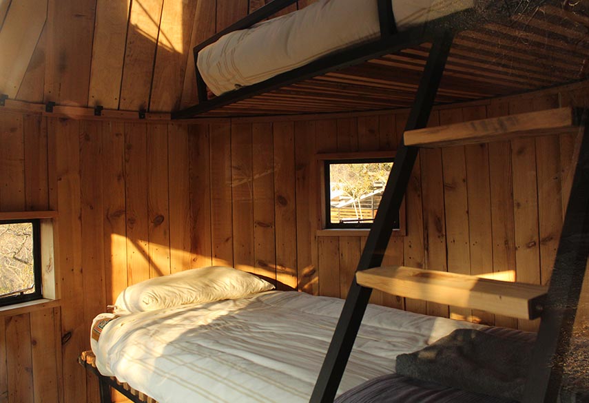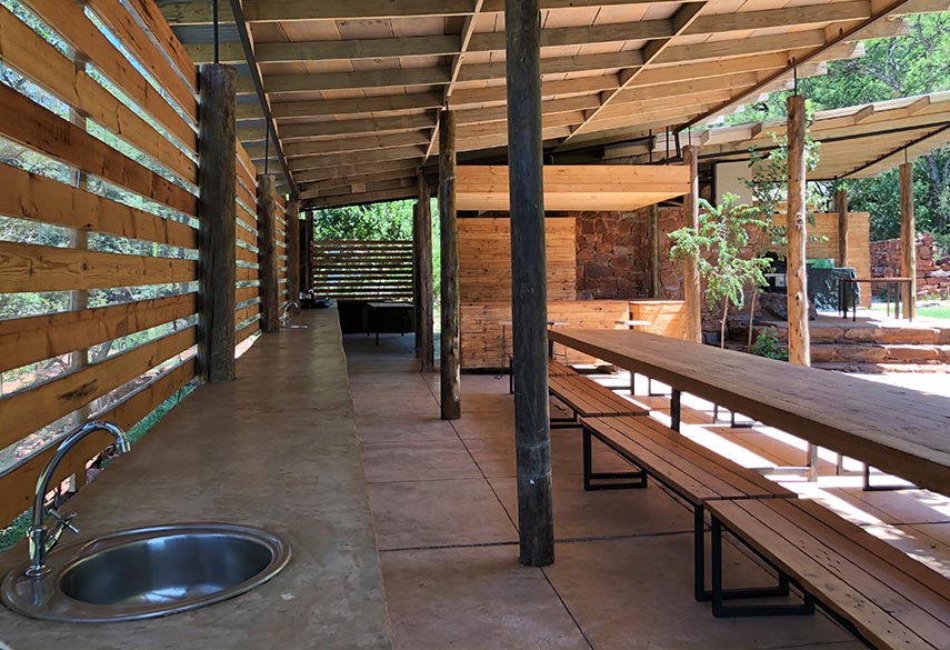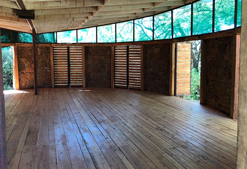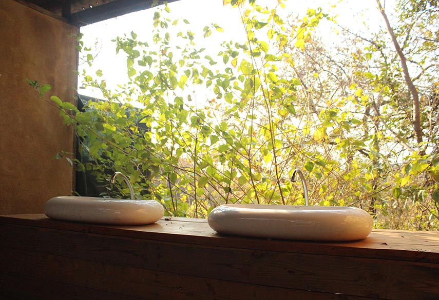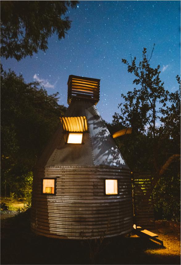 The Sky Terrace can only be booked by one group at a time and the minimum rate is for 12 people. The 5 Silo Capsules are 'bunk-style' and can sleep 2 persons each. Shared bathrooms are located close to the capsules. The 6 Tower Rooms have en-suite bathrooms and 2 single beds in each (can be made up as doubles). A gatherings hall that is an ideal space for hosting meditation, yoga, dance and drama workshops. The 2 bathrooms are located next to the capsules. For overflow there is shaded camping space where tents can be pitched at a separate rate.
