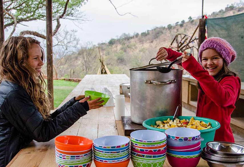 Self-catering does not include staff to clean dishes and the kitchen.